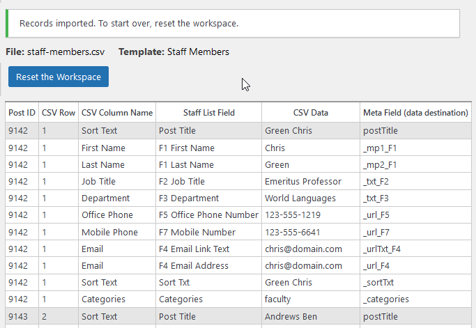 Staff Import – Import Status WordPress Plugin Staff List CSV – Staff Import – Import Status. Imported reset p32179
