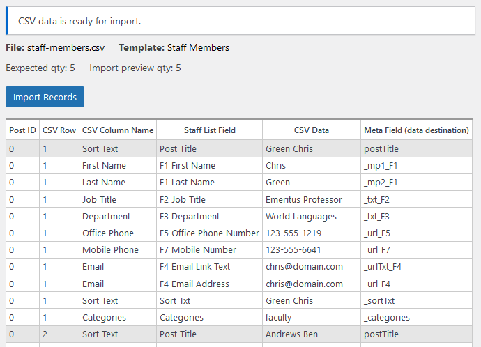 Import Staff Members WordPress Plugin Staff List CSV – Staff Import – Import. Ready for Import Import confirmation Imported p32231