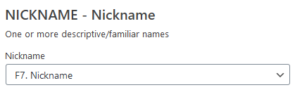 vCard Property – NICKNAME WordPress Plugin Staff List vCard – Property NICKNAME NICKNAME – one or more descriptive/familiar names for the object represented by vCard. NICKNAME:Jon,Johnny p29072