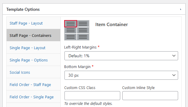 WordPress Plugin – Staff List – Template Options – Staff Page Containers